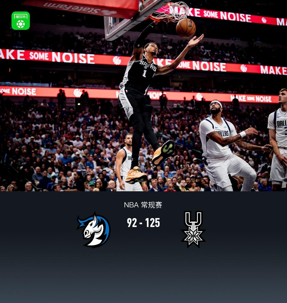 马刺125-92轻取独行侠,文班亚马40+15,弗拉格10+10
